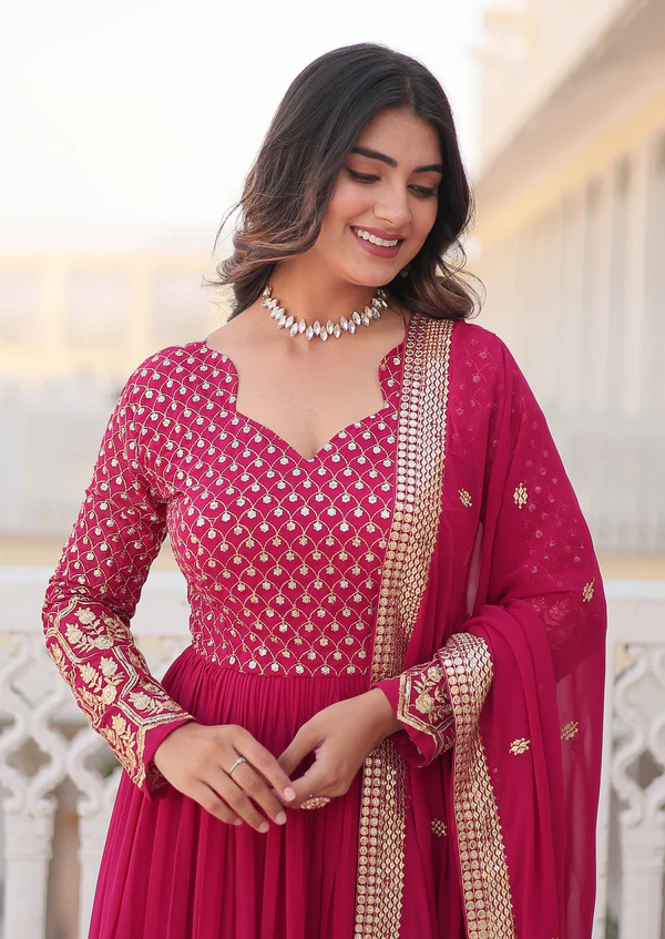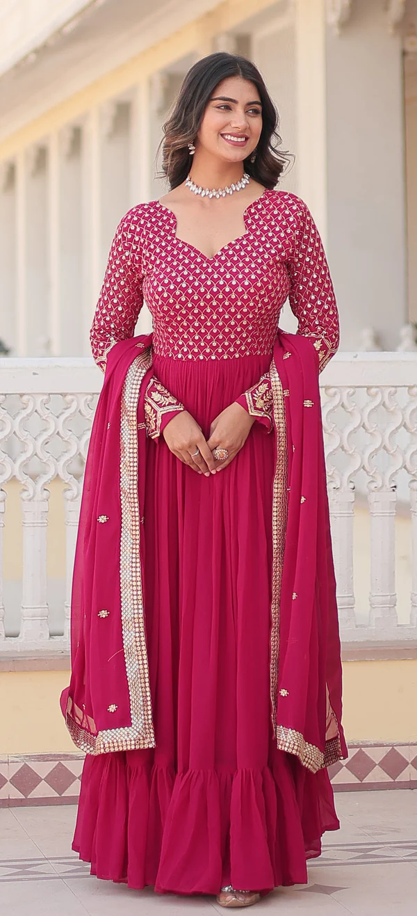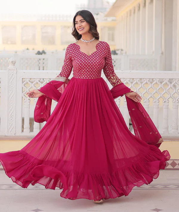Gown Work:-Sequins-Multi & Zari Embroidered