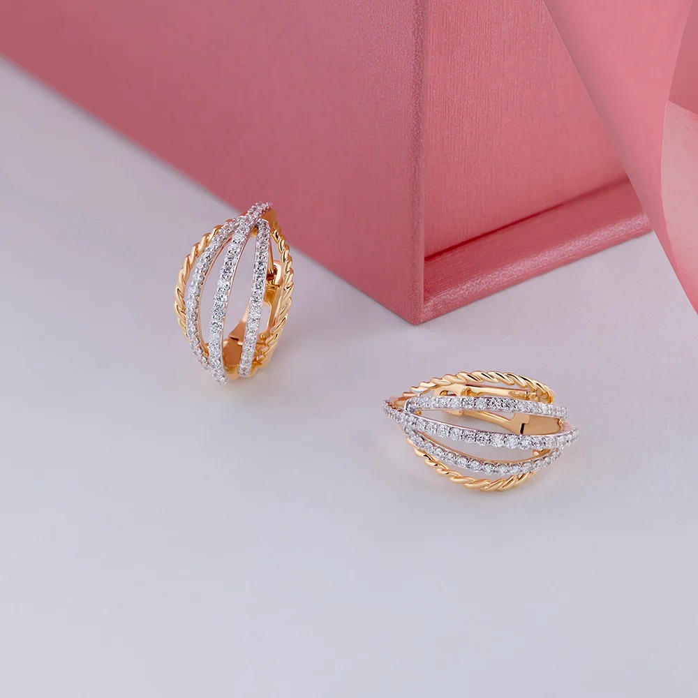 Get ready to shine with these Draped Luxe Gold & Diamond Hoop Earrings. The draped design, enhanced by the sparkling diamonds, adds a touch of elegance and luxury to these hoops. Whether you’re attending a formal event or just want to elevate your everyday style, these hoops are the perfect accessory. Pair them with a sleek dress or a casual outfit for a look that’s effortlessly chic. Crafted in 18 Kt yellow gold, these hoops are all about adding a touch of luxe to your jewellery collection. …