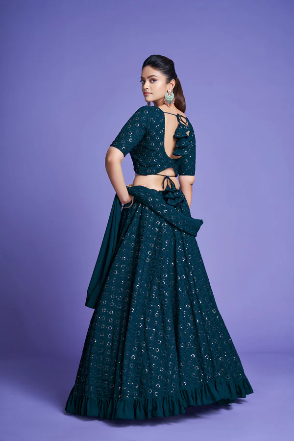 Product Name -Georgette Engagement Wear Turquoise Lehenga Choli