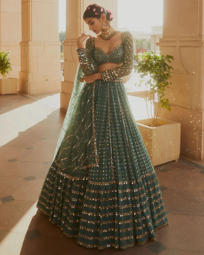 Be the first to review “Green Sequin Embroidered Faux Georgette Lehenga”