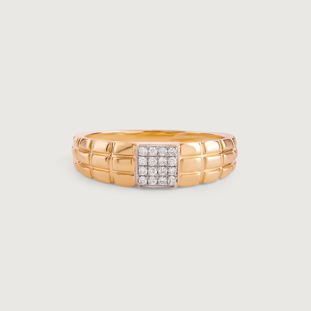 Rock a fresh style with this 14K yellow gold ring, designed with a standout grid pattern that adds texture and dimension. The square diamond cluster at the centre takes the shine up a notch, making it the ultimate blend of bold design and luxury. Whether you’re flexing for a casual day out or dressing to impress at a formal event, this ring’s geometric vibe and diamond brilliance make it the perfect accessory for the modern man who loves mixing edge with sophistication. …